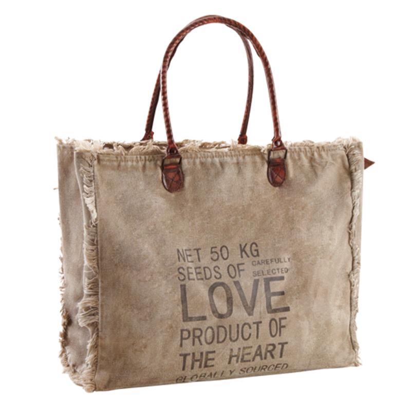 Sac en coton recyclé doublé 100% coton avec anses en cuir couleur brun. Fermeture zippée et poche intérieure zippée.
