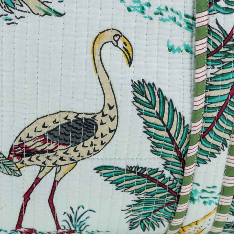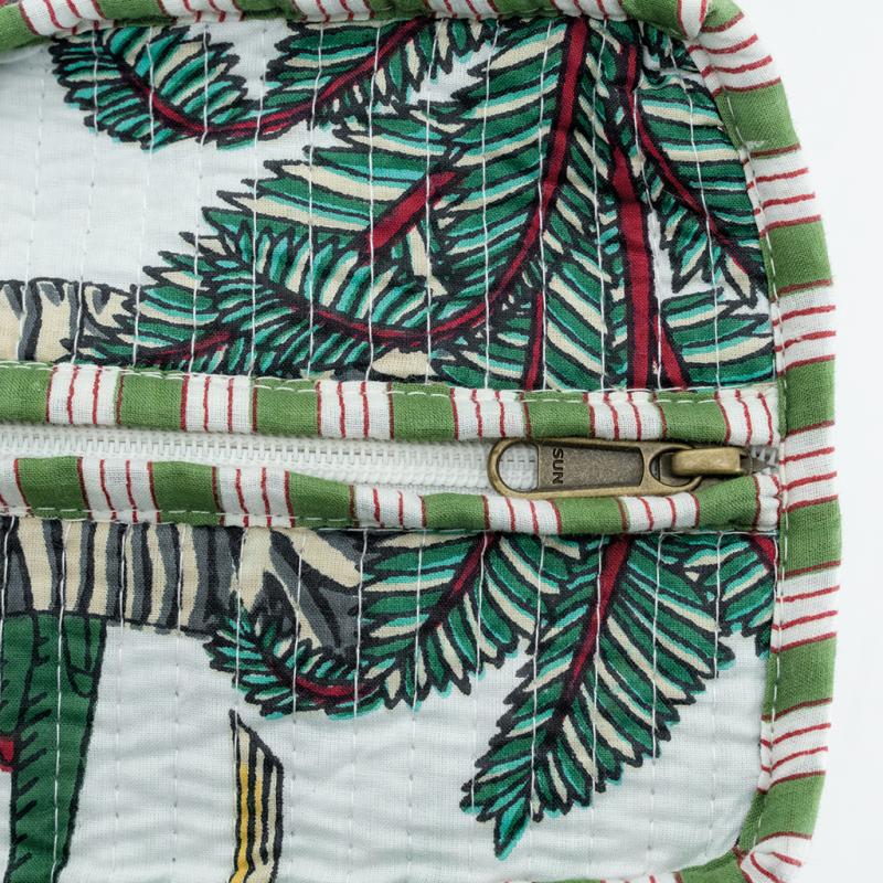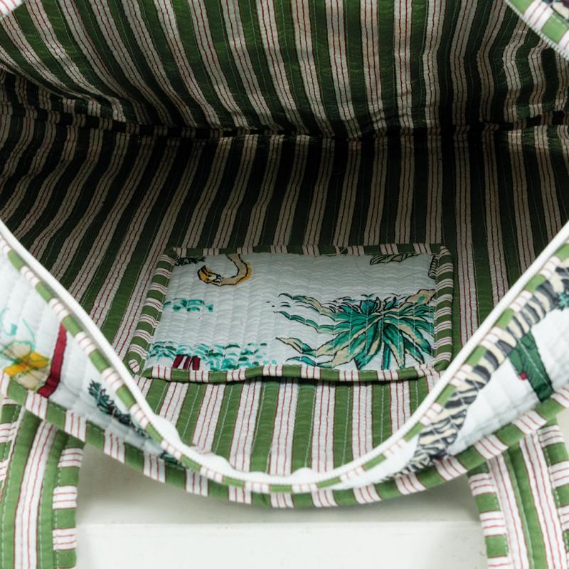 Sac en coton et nylon blanc motif jungle avec fermeture éclair et poche intérieure