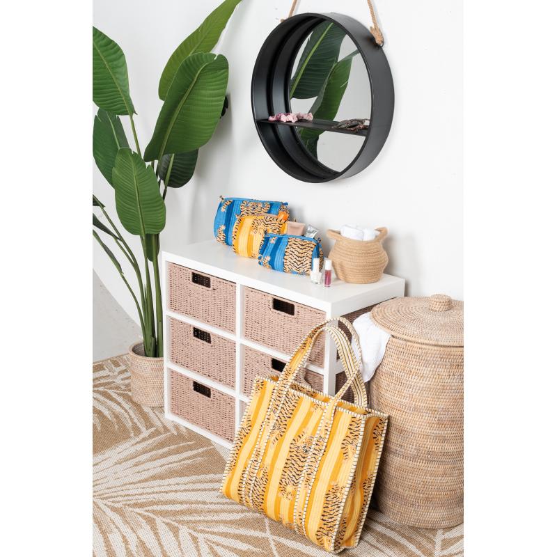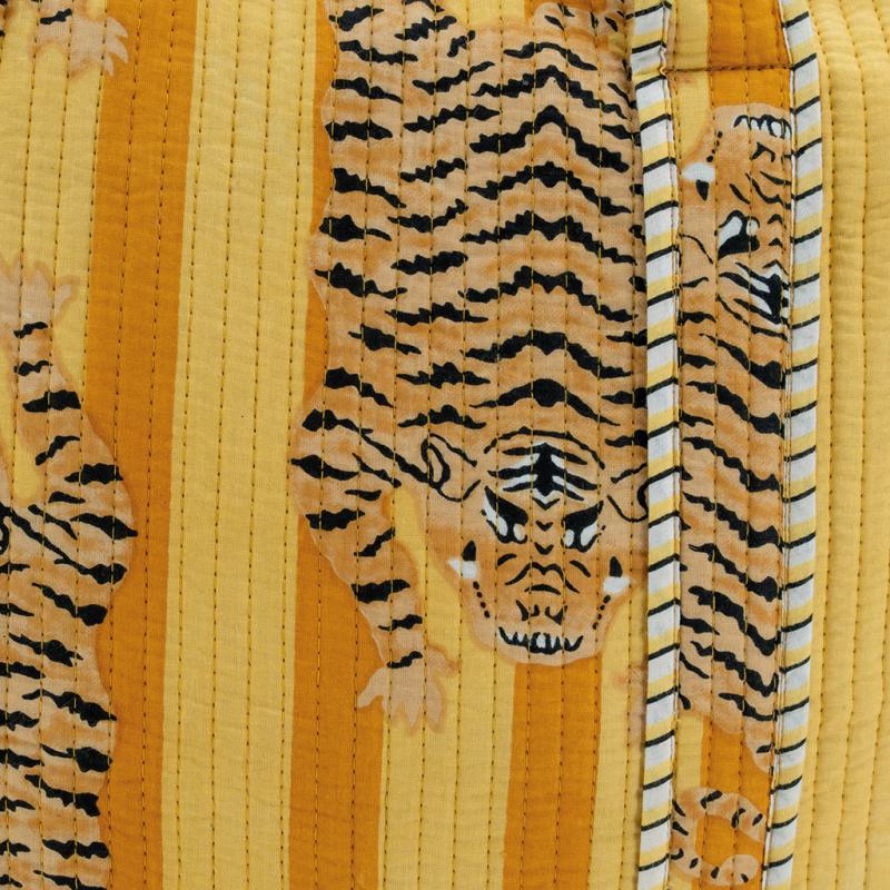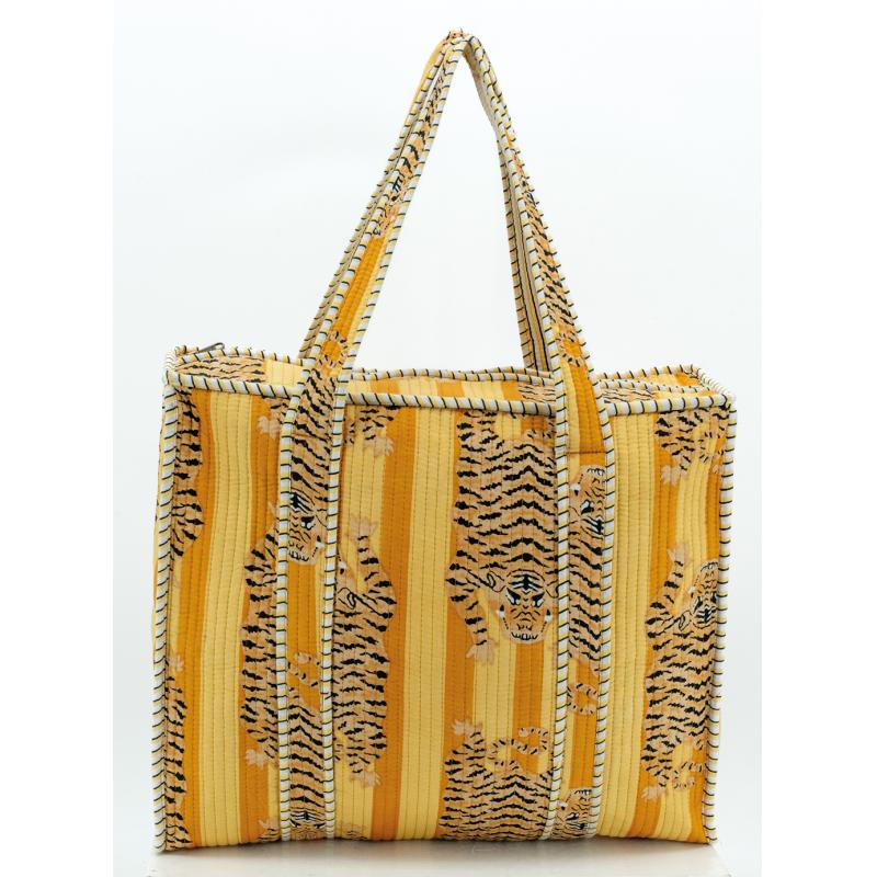 Sac en coton et nylon jaune motif tigre avec fermeture éclair et poche intérieure