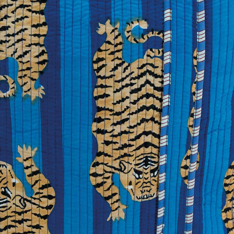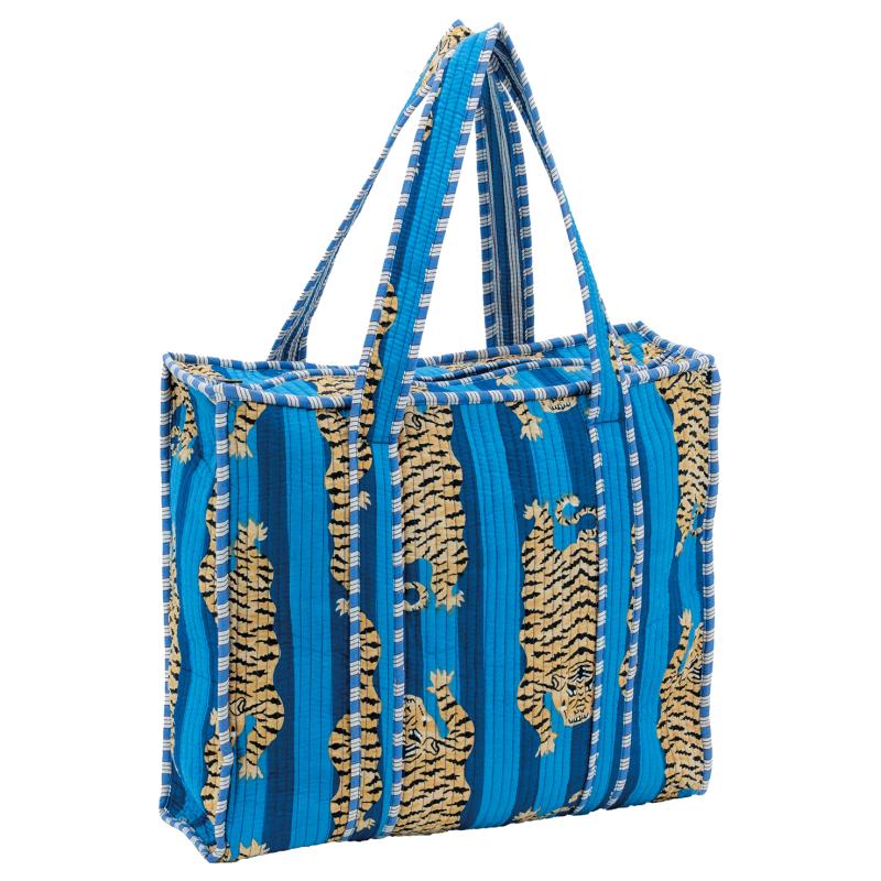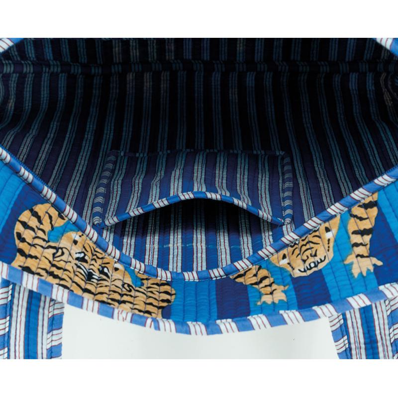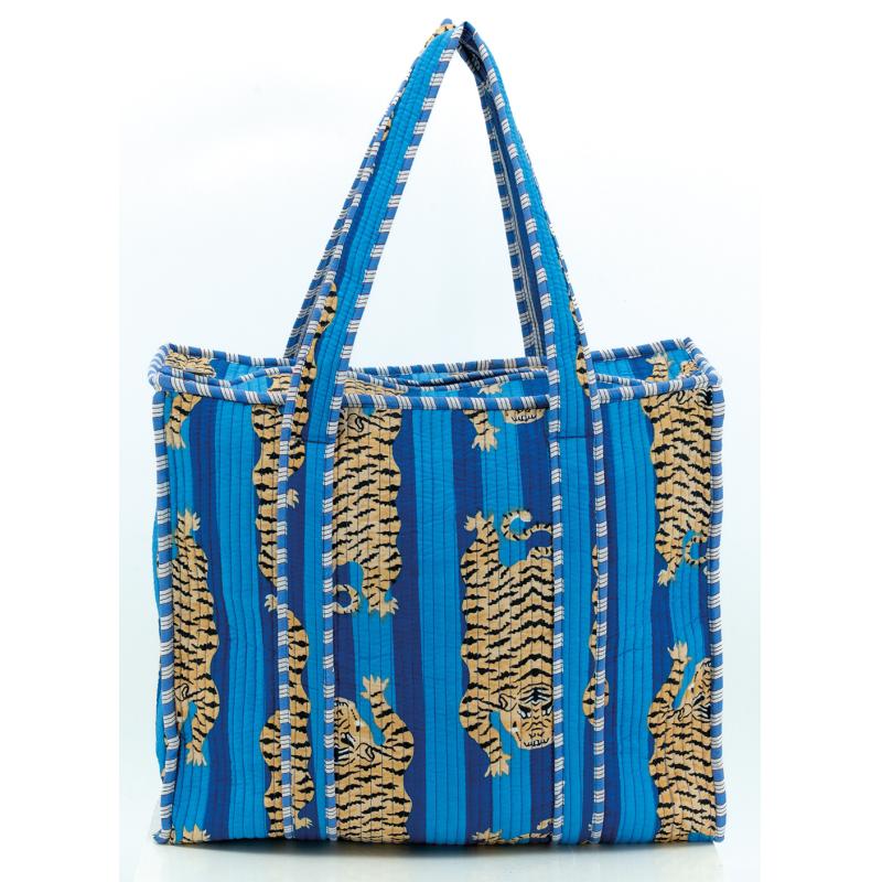 Sac en coton et nylon bleu motif tigre avec fermeture éclair et poche intérieure