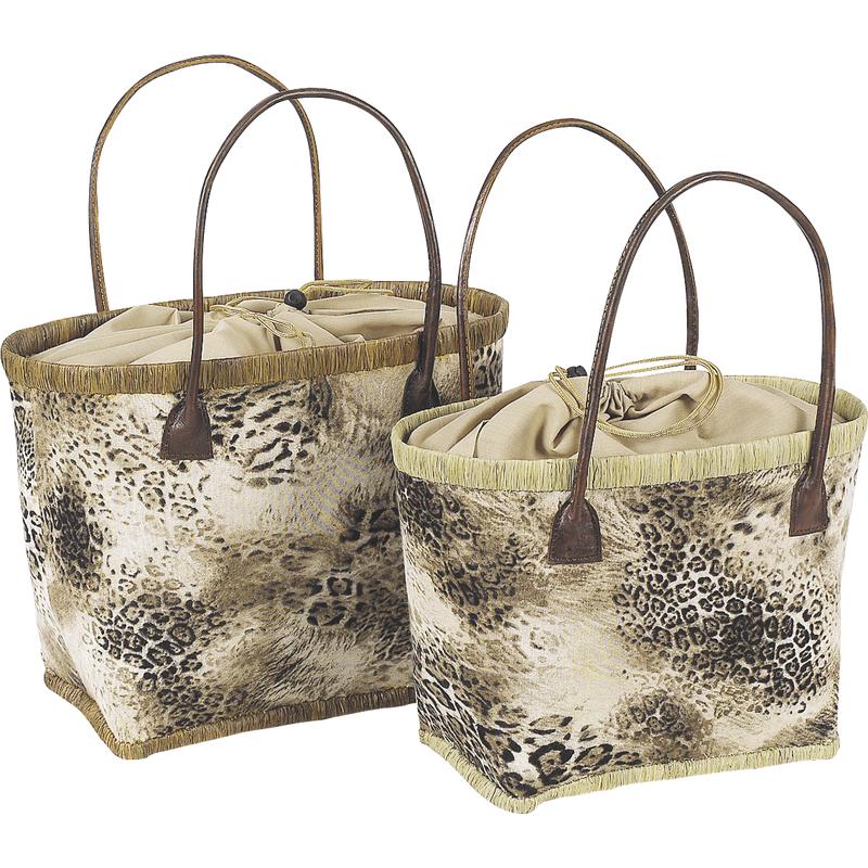 Sacs à main panthère en palmier, poignées en cuir. Poche intérieure zippée.