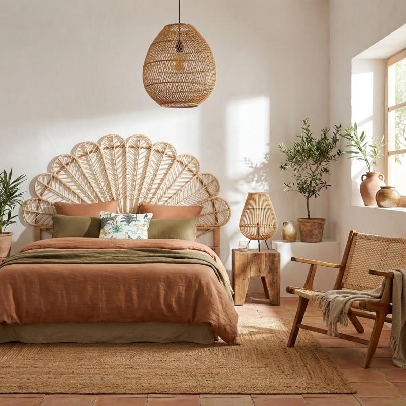 Tête de lit en rotin naturel