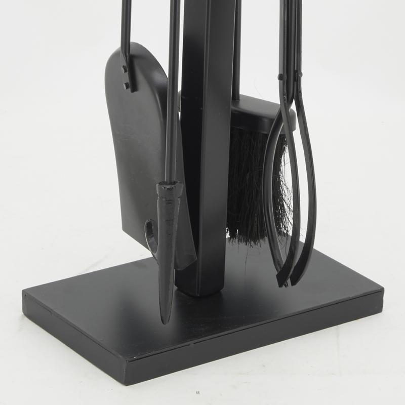 Valet de cheminée en métal noir composé de 4 accessoires avec poignées en cuir